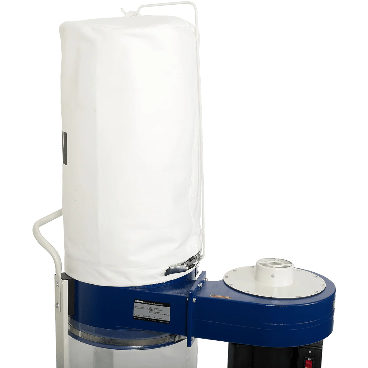 The Rikon 60-100 upper container can be equipped with an optional pleated cartridge filter and effectively captures fine wood dust in a 5-micron filtration bag.