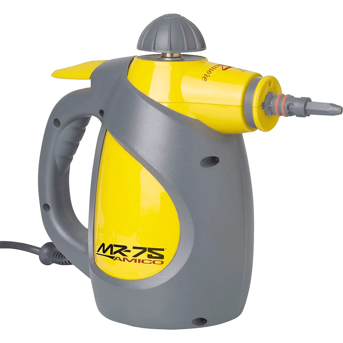 Eliminate germs and other household germs and grime with the Vapamore MR-75 Amico hand-held portable steam cleaner. This powerful 3.5 lbs. steam cleaner easily tackles tough cleaning jobs with a powerful 210 degrees of heat and an arsenal of accessories and tools to help you complete any job.